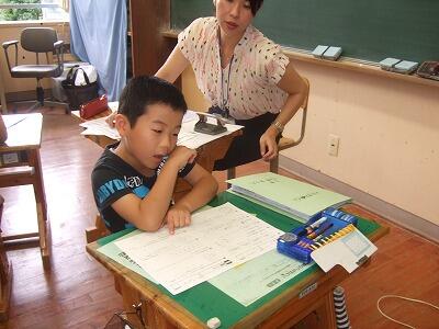 小学5.6年生は、先生の話をしっかり聞き算数の問題を解いていました。