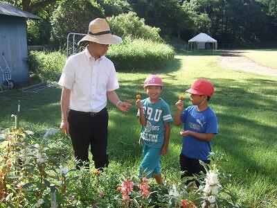 花壇をのぞくと、育てている花や野菜が順調に育ってきましたよ。