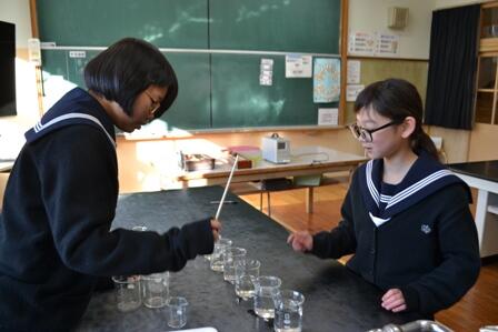 小5の理科の学習です。水溶液について実験もしながら学んでいました。