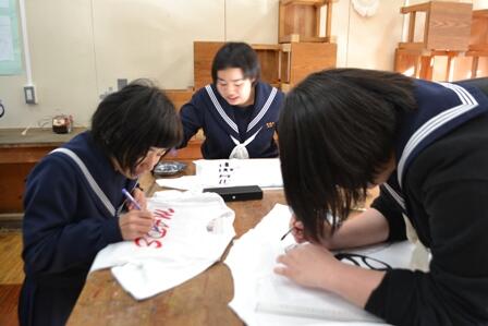 中1の音楽では、受験前の中3激励会での歌の練習をしています。