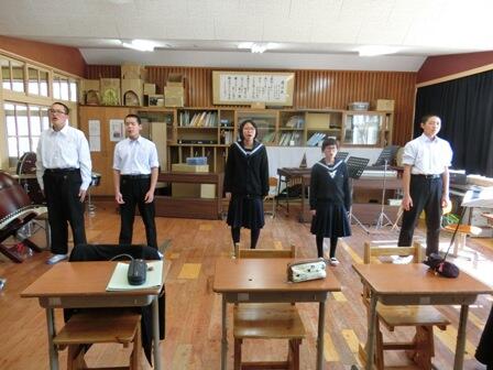 中3の音楽。卒業式に向けて「仰げば尊し」の練習です。