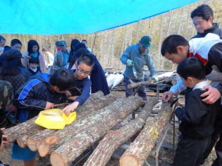 昼休みは、みんなで花摘みと椎茸の収穫をしました。