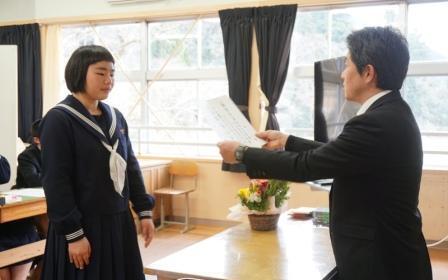 卒業生一人一人に、校長先生から卒業証書が渡されました。