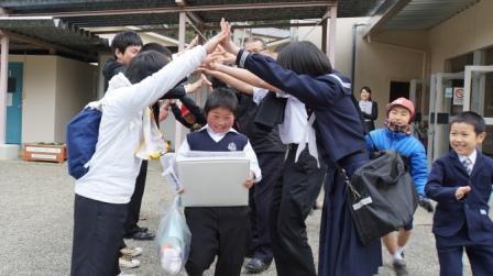 中3でも小6でも、自分たちの学校生活を振り返るスライドムービーを鑑賞。