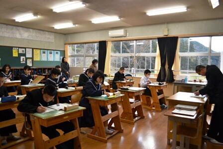 今日は冬休みですが、地元生は教室で冬休み課題をしています。