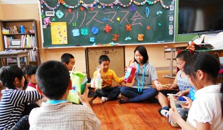 読書コーナーでは、さっそく小中学生一緒に仲良く本をよんでいます。