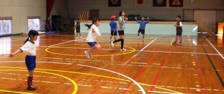 今日は、小学校の合同体育で、バスケットボールを行いました。ドッチボールとバスケットのパスの違いを先生から学び、みんなで練習しました。みんな一生懸命練習しました。