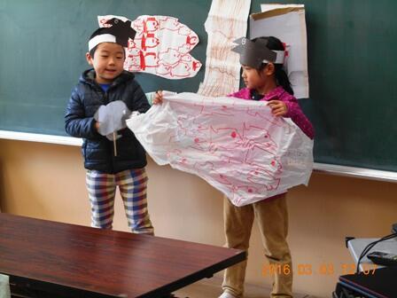 今日1,2年生は、地域の未就学児と保護者を呼んで朗読劇を行いました。1,2年生の動きのある演技に未就学児は、興味深そうに聞いていました。また、1 ,2年生が一生懸命に作った掲示物が学校掲示版に載っています。