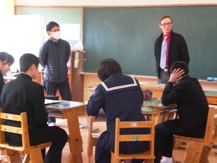 一方、中学2年生は英語の授業で、習った比較級の発音練習をしていました。