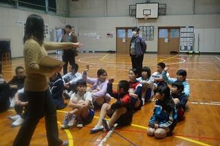 日が昇ると暖かくなり、体育は長縄跳びと手サッカーをしました。子ども達は、お互い声を出し合ってパスをつないでいました。