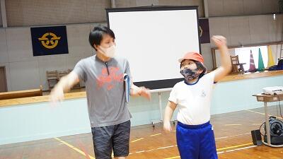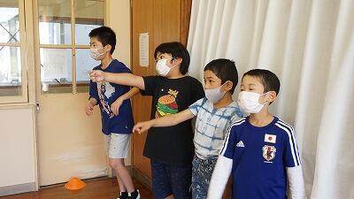 小学生体育の授業は、運動会で発表予定の臼太鼓踊りの練習をしました。まずは、細かい動きの確認をして、昨年の経験者の児童が指導に協力してくれています。まずは、1つ1つの動きを覚えることが大切ですね。