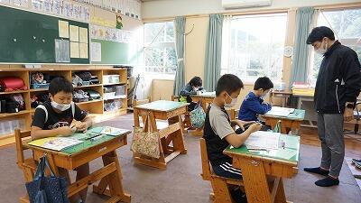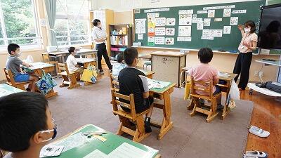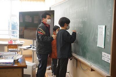 小学1・2年生の算数の様子です。1年生は「くり上がりのある足し算」について、2年生は「かけ算の意味」について学習しました。