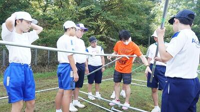 チーム対抗でゲームをして、赤団・白団が決定しました。