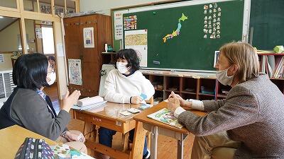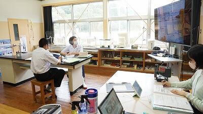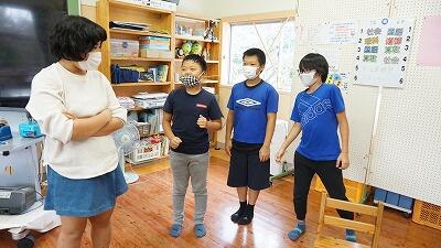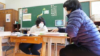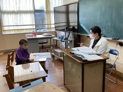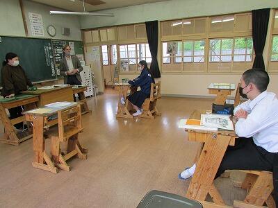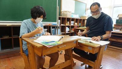 中学生は全学年、学級活動の授業です。山村留学を通して成長したいことを保護者の皆様と一緒に考えていきました。自分の良さと弱点を見つめ直し、目標を設定することで自分の進路選択に活かしていきます。
