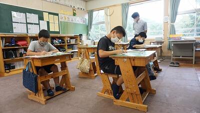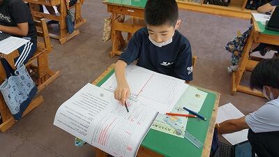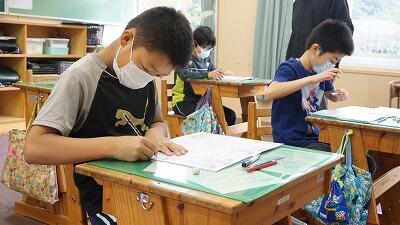 小学5年生の国語の授業の様子です。漢字の小テストにチャレンジしています。