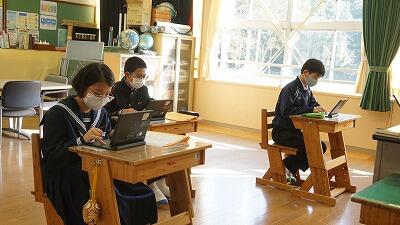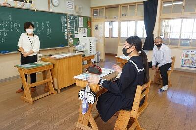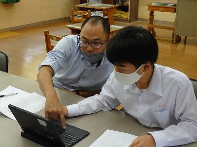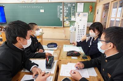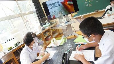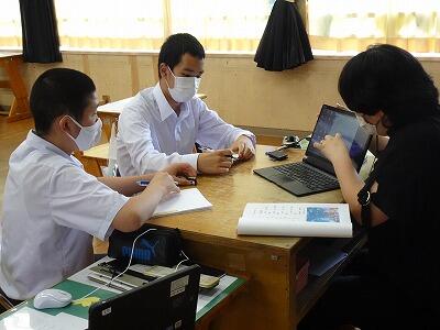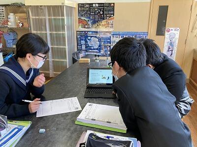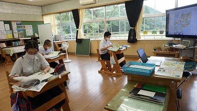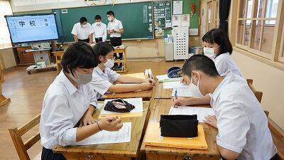 中学2年生の社会の授業の様子です。中国・四国地方の自然環境の特徴について調べていました。