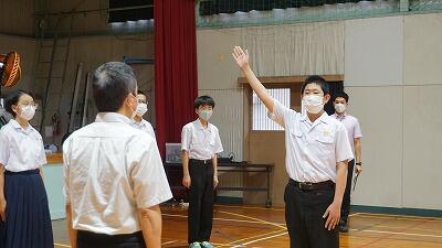 中学1・2年生の中体連壮行会の様子です。1人1人大会の目標を述べ、主将が選手宣誓を行いました。練習時間は短くとも、中身の詰まった鍛錬を日々行い、試合に臨みます。個人戦が主になりますが、他校の部員たちに負けないくらい強いチームワークで勝利をもぎ取って欲しいですね。