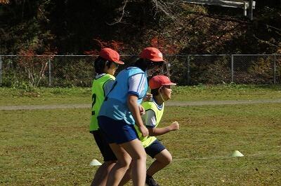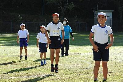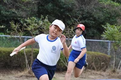 徒競走の様子です。運動場の土がカラッと乾いていたため、予行練習では全力でできなかった徒競走を全力の走りで行いました。子どもたちはお互いに負けじと必死に走りぬき、優勝を目指して互いに高め合っていました。