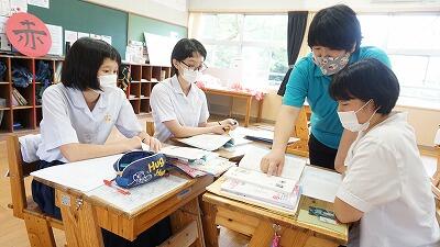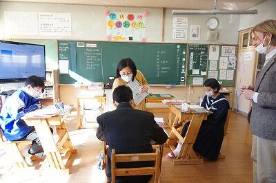 中学校1年生は、英語の授業でこれまでの学習内容の復習をしました。