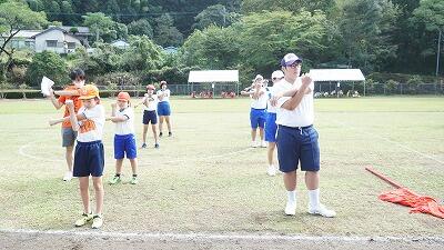 エール交換の様子です。カッコいい姿勢で相手にエールを送ることができるよう、腰や足の開き方などを調整しています。