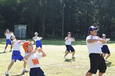 開会式練習では、返礼や返事のタイミング、向きを変えるときの足運びなどを練習しました。子どもたちは真面目に取り組み、始めは小さかった返事や不揃いだったお辞儀も、練習が終わるころには見違えるほどになっていました。まだまだ暑い日が続きますが、これからも真剣に練習し、全力のパフォーマンスを運動会で披露して欲しいですね。