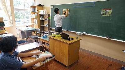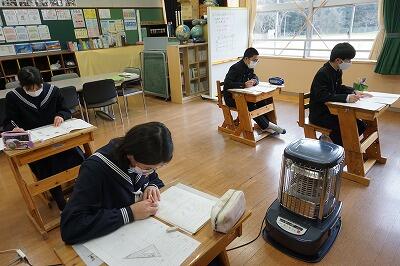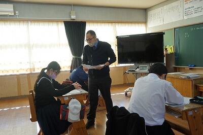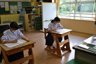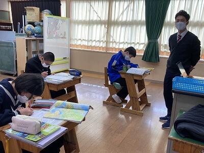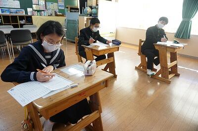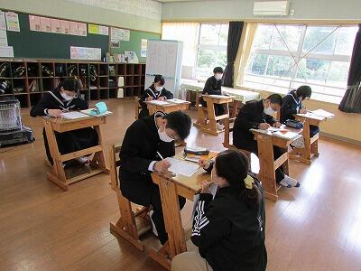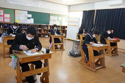 中学3年生の英語の様子です。もうすぐ行われる実力テストに向けて、過年度の問題を解きました。給食後ということもあり睡魔に襲われつつも、目をこすりながら真剣に問題を解いていました。