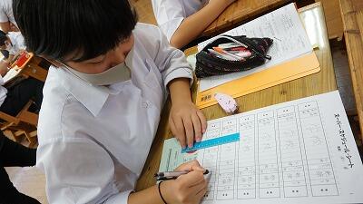 生物分野の単元テストを行いました。自分たちで採点までしっかりと行いました。