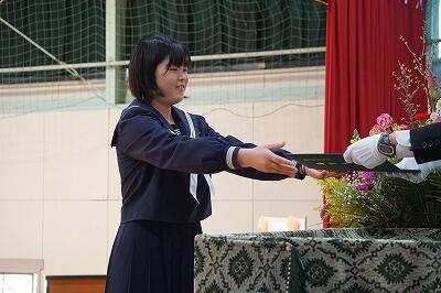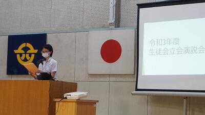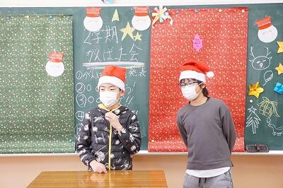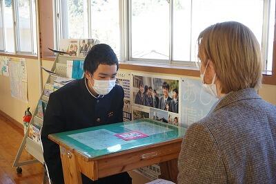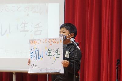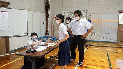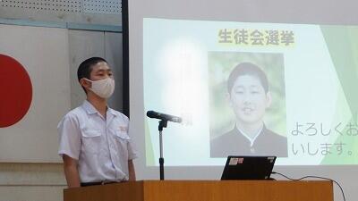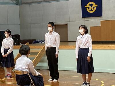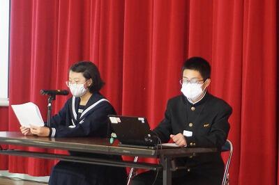 中学生がリーダーシップを発揮し、児童生徒会活動についての説明をしたり、