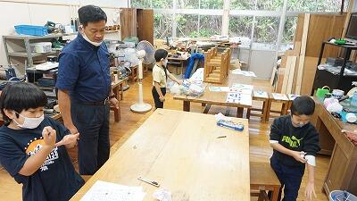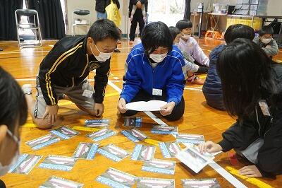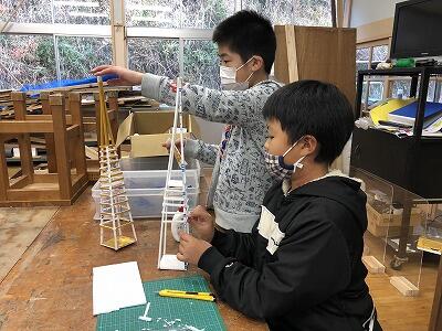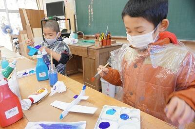 小学5・6年生の図工の様子です。いろんなサイズの紙を使って、どの紙飛行機が一番飛ぶかを試しました。中には、体育館の半分ぐらいの距離を飛ばした人もいました。