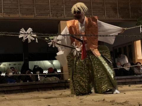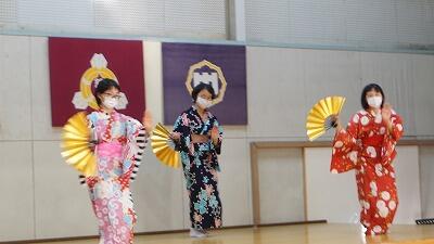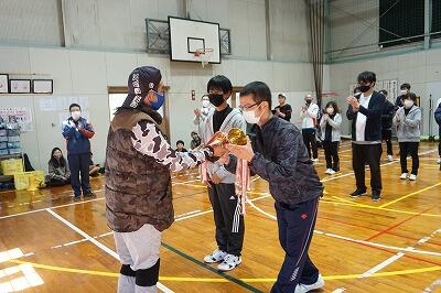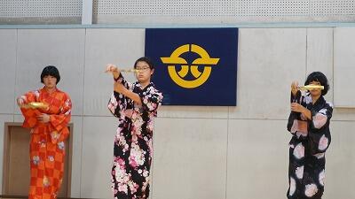 一方、本校中学生代表4名は、西都原御陵前広場で、西都「まっぽす」神楽イベントにおいて、銀鏡神楽「花の舞」を披露しました。