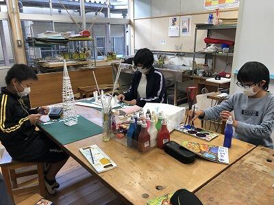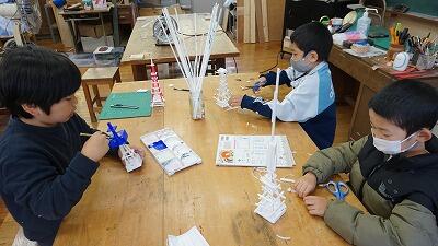 小学1・2・3年生の図工の様子です。折り紙を使って作品を作りました。それぞれが工夫を凝らして、個性豊かな作品ができあがっていました。
