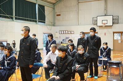 放課後は、中学生の臼太鼓踊りの練習がありました。