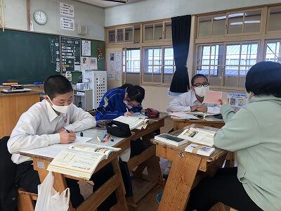 中学3年生国語の授業の様子です。説明文を読んで、自分の意見を交えながら批評をするという内容の授業でした。