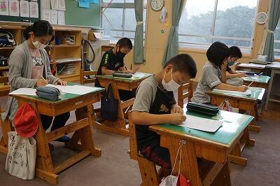 小学校4年生は理科の授業で「物の温まり方と体積の変化」についてテストを受けました。今まで学習した成果を発揮できたようです。