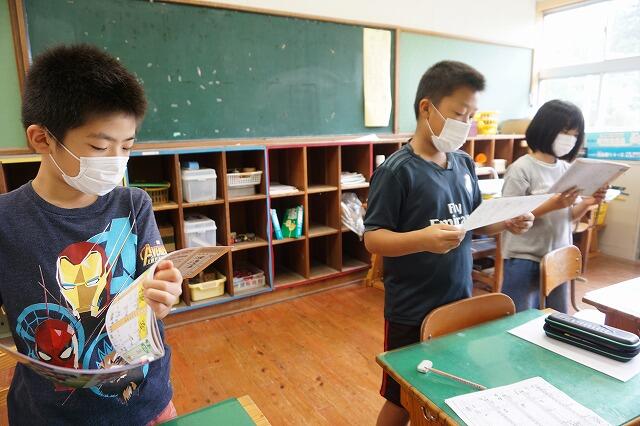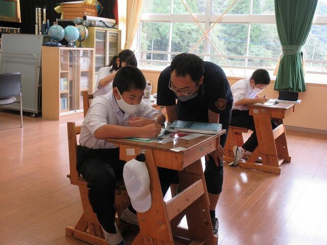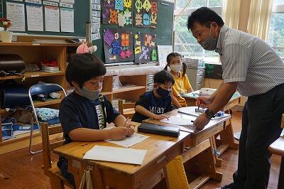 小学校1・3年生は国語の授業で、先日行われた銀鏡神社清掃の感想文を書きました。自分の考えたことを一生懸命つづっていました。