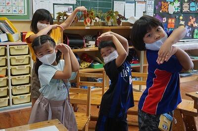 踊りを覚えた4.6年生が1.3年生に教えていました。