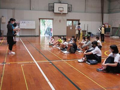 今日は、雨でプールが中止になったため、体育館で体育の授業がありました。