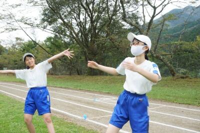 小学生の体育では、運動会に向けて臼太鼓踊りの練習がはじまりました。