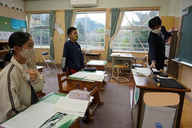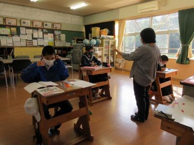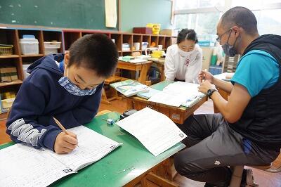 小学1・3年生の国語です。冬休み課題を終えての確認テストでした。どんどん問題を解いている子どもたちの「先生!解けました。」の声が元気に廊下まで聞こえてきました。