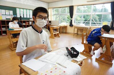 中学1年生の数学の様子です。平面図形の復習をしました。月曜日の単元テストに向けて苦手な個所を先生に聴き、確実に問題を解くことができるように頑張っていました。