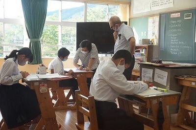 中学校2年生は、英語の授業で明日の実力テストのために過去問に取り組み、解説とやり直しをしました。
