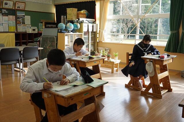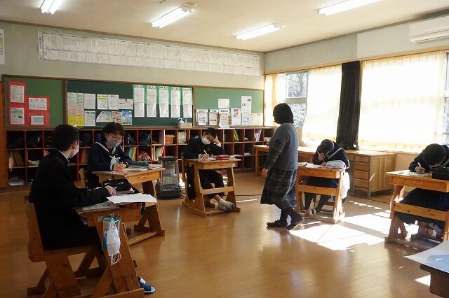 中学3年生の英語の様子です。高校入試に向けての対策をしました。冬休みにどれだけ力をつけることができたか、一人一人確認することができました。最初に受験する人は受験日まで1ヶ月を切りました。最後の最後まで気を引き締めていきましょう。