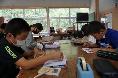 小学1・3年生の図工は、折り紙の作品が完成し、動物の絵を描きました。