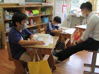 小学2・5年生は、国語で新しい漢字の学習を順調に進めています。タブレットのドリル機能を使ってきちんと覚えているか確認しました。