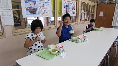 しかし、給食室の先生方の「銀鏡の子どもたちにも食べさせてあげたい」という心遣いにより、昨日、ついに本校の子どもたちも食べることができました。「甘い!」「おいしいです!」と思わず笑みがこぼれる子どもたちの姿に、ほっこり心温まる給食となりました。