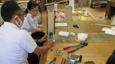 中学生の女子はロボコンに向けて、ロボット制作に取り組んでいました。