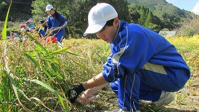 5・6時間目に、農業体験学習(稲刈り)をしました。