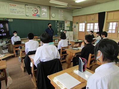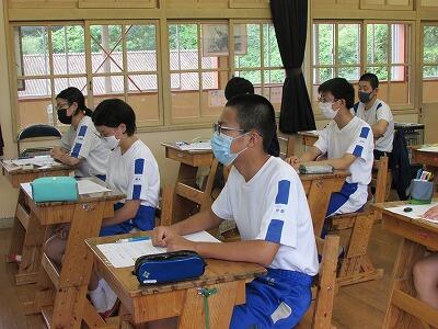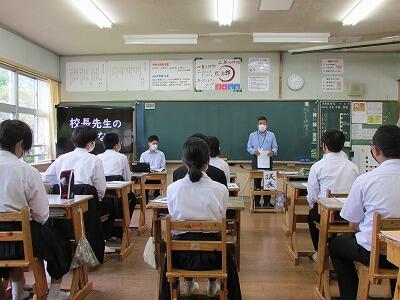 5校時は、西都土木事務所の方を講師に招き土砂災害防止教室を行いました。模型を使って土砂災害の様子を再現したり、実際に起こった土砂災害の映像を見たりしました。1時間に20㎜、連続100㎜以上の雨は危険だそうです。日ごろの備えと早めの避難が大切です。地区のハザードマップもいただいたので、家族全員でいざという時の行動を確認をしておきたいですね。
