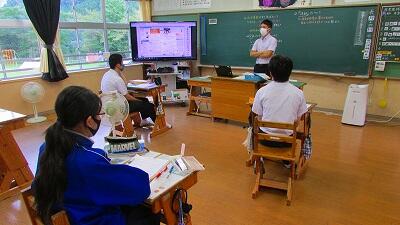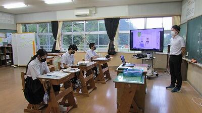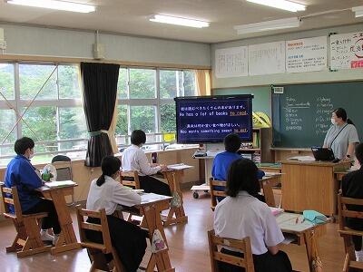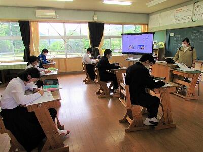 中学2年生の英語の様子です。教科書の本文内容を理解する授業でした。問題を解きながら、理解を深めました。