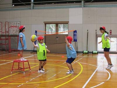 ラリーが続くように工夫してゲームをしています。サーブレシーブはまずボールをキャッチして、3回で相手コートに返す練習をしています。今後はレシーブの練習も入れながら、3段攻撃を最終目標としていきます。